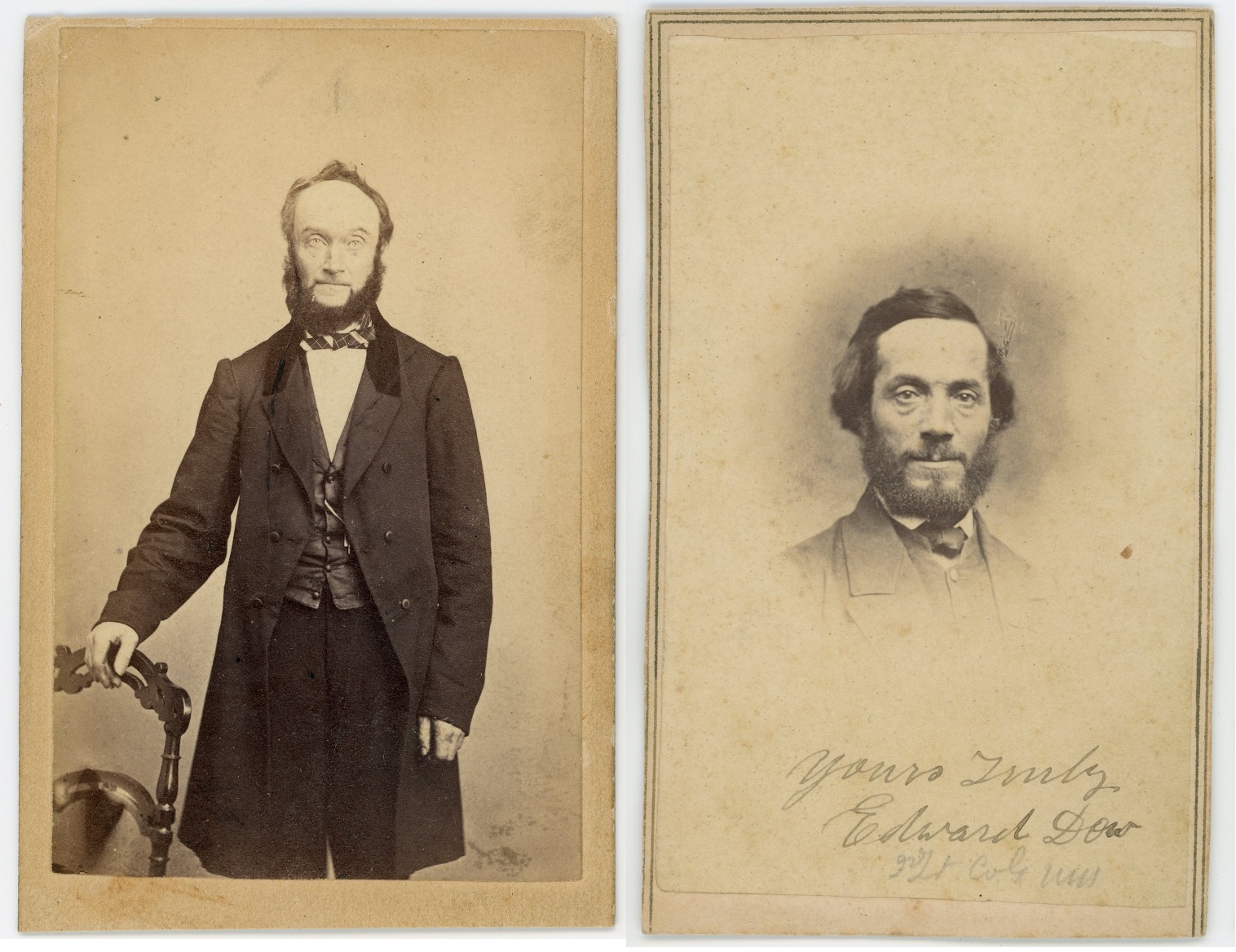 It seemed fitting to follow up the previous post about my first U.S.S.S. photo with the “second” one that rekindled and refocused my interest in collecting; a plain old undated, unsigned cdv that I found at a Red Lion, PA antique store sometime in the late 2000’s. I recognized him from an alternate uniformed cdv (at right), several duplicates of which currently reside in multiple collections including those of Rick Carlile and the U.S. Army Center of Military History at Carlisle, PA. I told more of finding the civilian-clothed cdv in the “Welcome!” link above.
