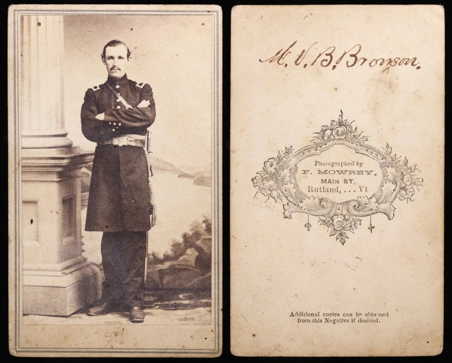 Martin Van Buren Bronson, Company F 1st U.S. Sharpshooters, in a portrait taken in the summer of 1862 while at home in Vermont on recruiting duty. A marble-cutter since the age of 11, Bronson eventually joined a company of Vermont state militia artillery before enlisting in the 3-month 1st Vermont Infantry in May 1861. TheContinueContinue reading “Martin Van Buren Bronson”